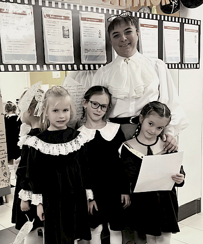 Филипки провели день сей, аки истинные лицеисты XIX столѣтiя: обучались искусству краснорѣчiя и рисованiю, познавали ариѳметику, упражнялись въ музицированiи и японскомъ искусствѣ складыванiя бумаги. Наряды учениковъ были выше всякихъ похвалъ — великолѣпная подготовка!