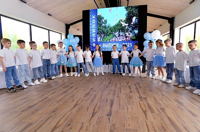 Выездной выпускной в "Филипке" стал хорошей ежегодной традицией. На празднике ребят ждали приятные сюрпризы и яркие моменты. Торжественная часть подарила море улыбок и тепла: дети прочитали стихи любимым педагогам, исполнили трогательные песни и попробовали себя в роли настоящих танцоров, исполнив красивый вальс вместе с друзьями. Каждому выпускнику был вручён диплом, памятный альбом с творческими работами, фотоальбом выпускника, фирменный журнал и кепка.